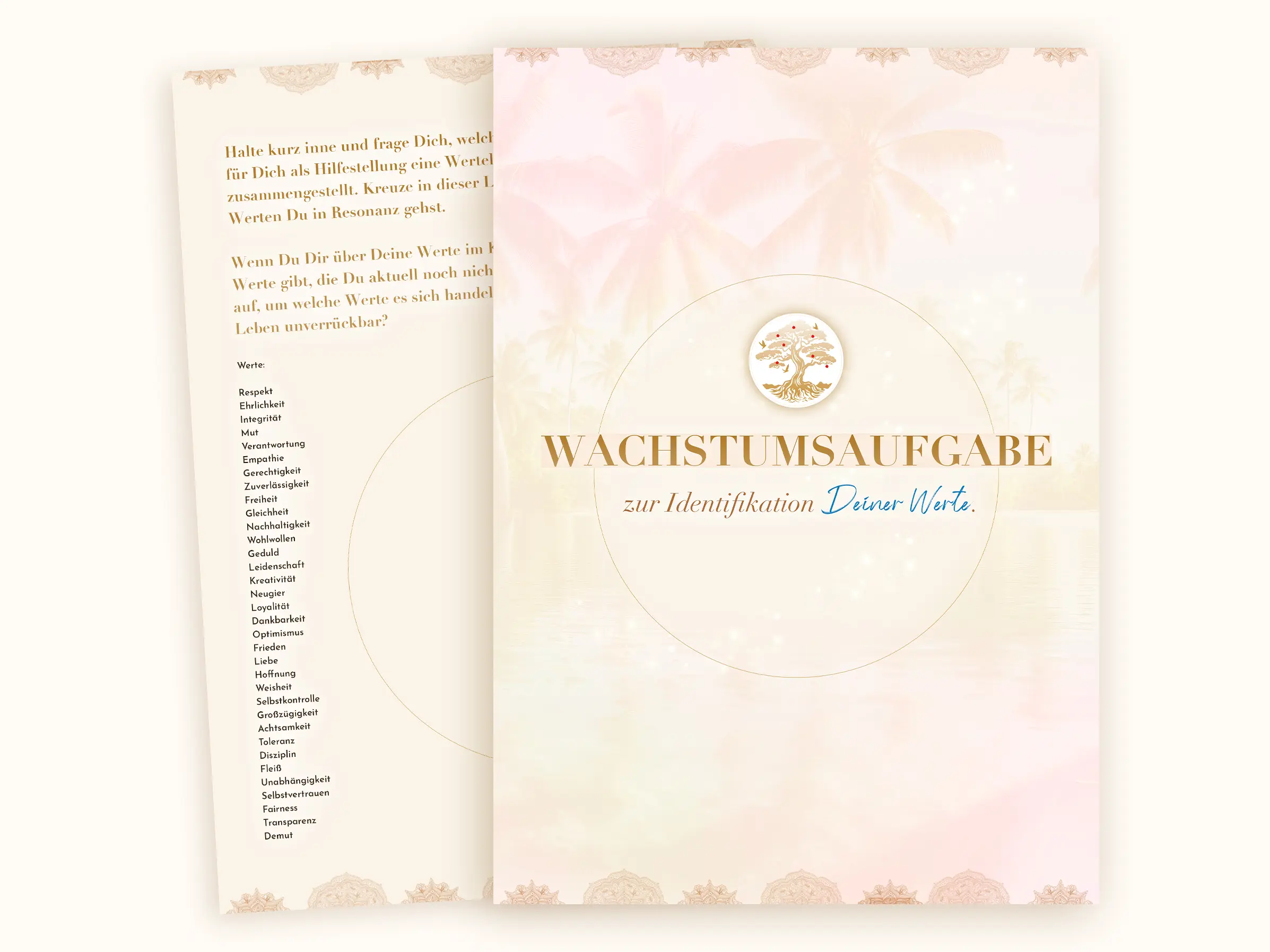 Wachstumsaufgabe zur Identifikation Deiner Werte: Halte kurz inne und frage Dich, welche Werte Dich leiten. Ich habe für Dich als Hilfestellung eine Werteliste mit Vorschlägen zusammengestellt.